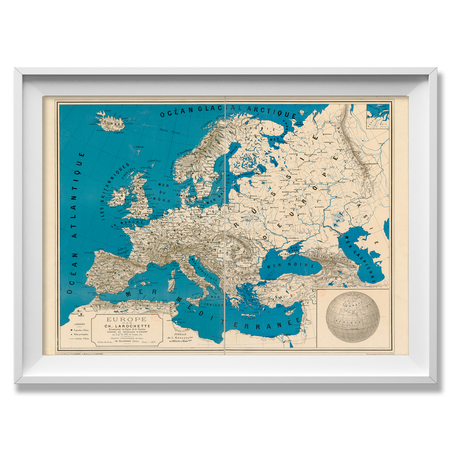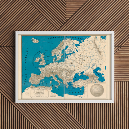 Enhance your decor with this stunning map depicting Europe in French. Transform an empty space or give as a thoughtful gift. Immerse yourself in its intricate details and transport yourself to another world. Elevate your home or gift it to a loved one. With its delicate details, this print comes to life like the original historic one.