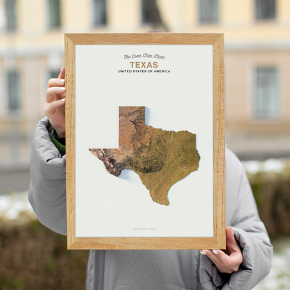 Enhance your decor with this stunning map print depicting the state of Texas, part of the United States of America. Transform an empty space or give as a thoughtful gift. The print boasts intricate shading that creates a lifelike effect. Immerse yourself in its intricate details and transport yourself to another world. Elevate your home or gift it to a loved one. With its delicate shading, this print comes to life with a mesmerizing 3D effect.