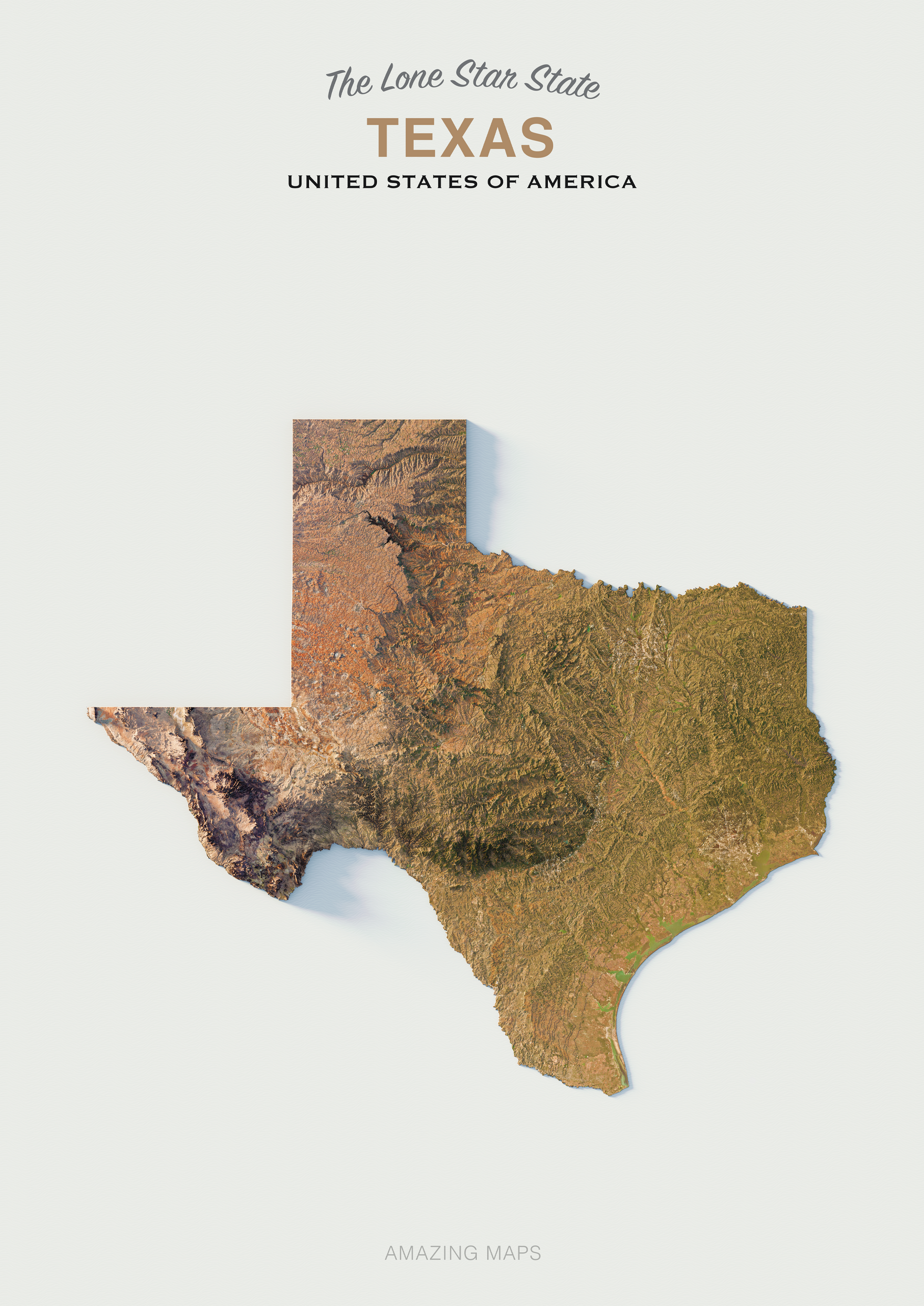 Texas Realistic Relief Map Light