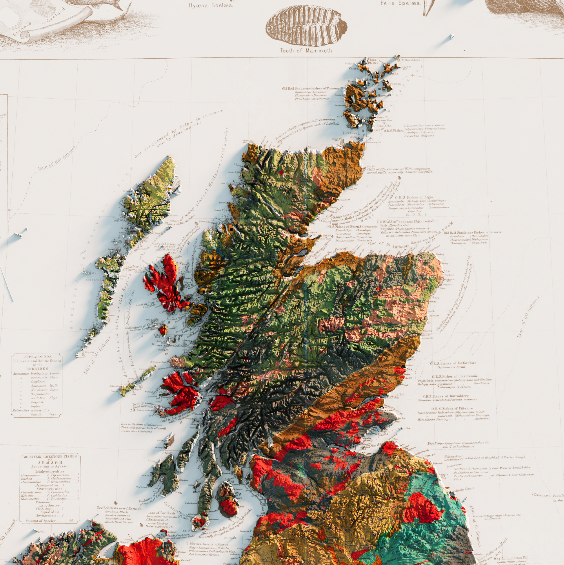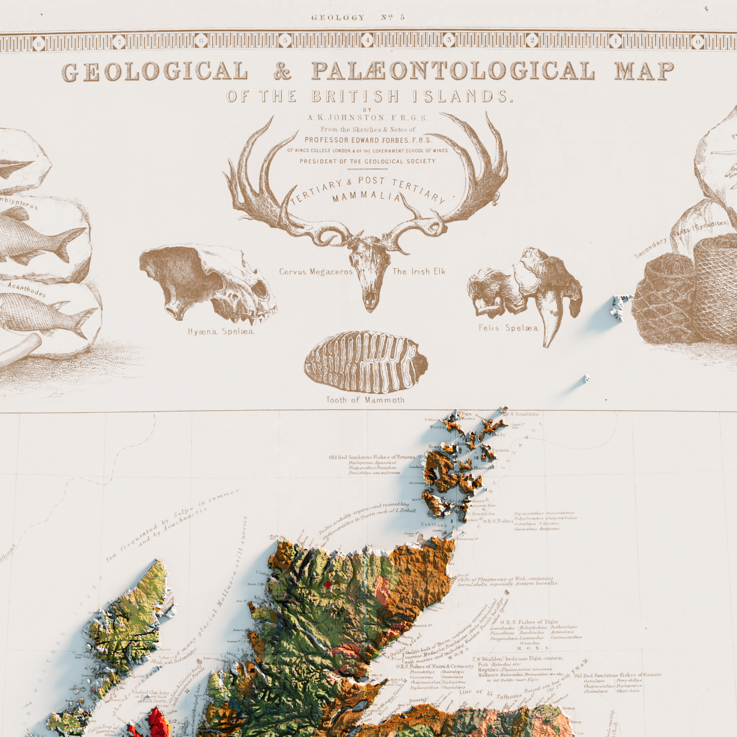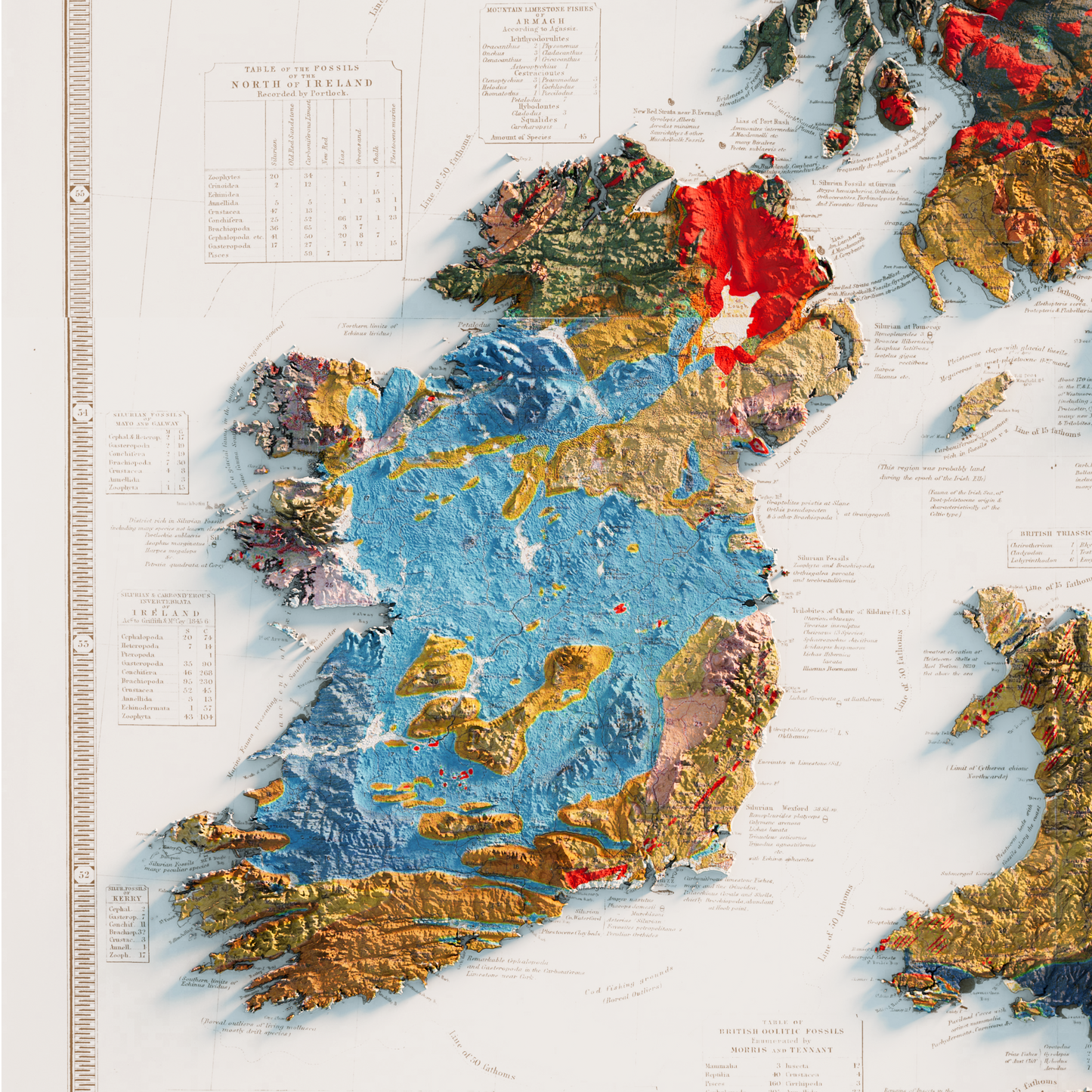 Enhance your decor with this stunning map print depicting the geology of the British Isles. Transform an empty space or give as a thoughtful gift. The print boasts intricate shading that creates a lifelike effect. Immerse yourself in its intricate details and transport yourself to another world. Elevate your home or gift it to a loved one. With its delicate shading, this print comes to life with a mesmerizing 3D effect.