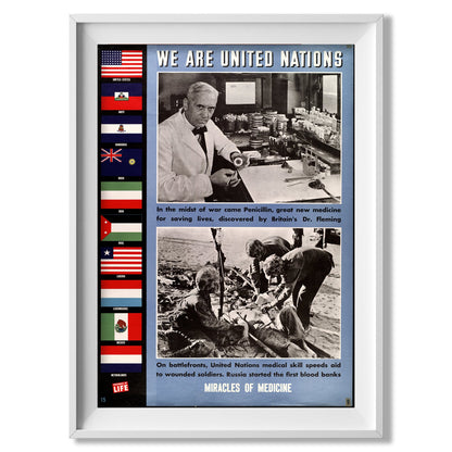 Enhance your decor with this stunning propaganda poster depicting the UN spirit. Transform an empty space or give as a thoughtful gift. Immerse yourself in its intricate details and transport yourself to another world. Elevate your home or gift it to a loved one. With its delicate details, this print comes to life like the original historic poster.
