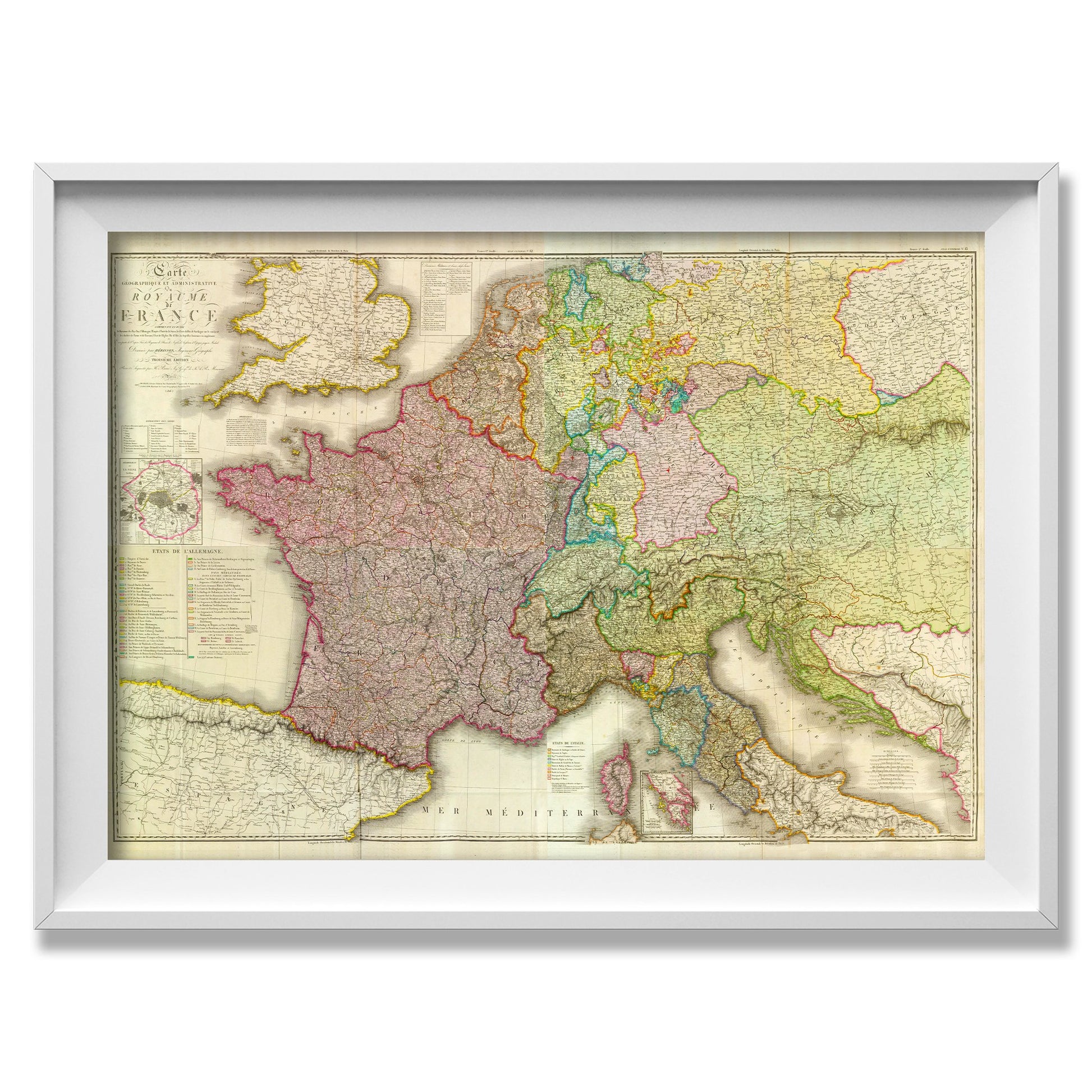 Enhance your decor with this stunning map print depicting France in the 19th century. Transform an empty space or give as a thoughtful gift. Immerse yourself in its intricate details and transport yourself to another world. Elevate your home or gift it to a loved one. With its delicate details, this print comes to life like the original historic map.