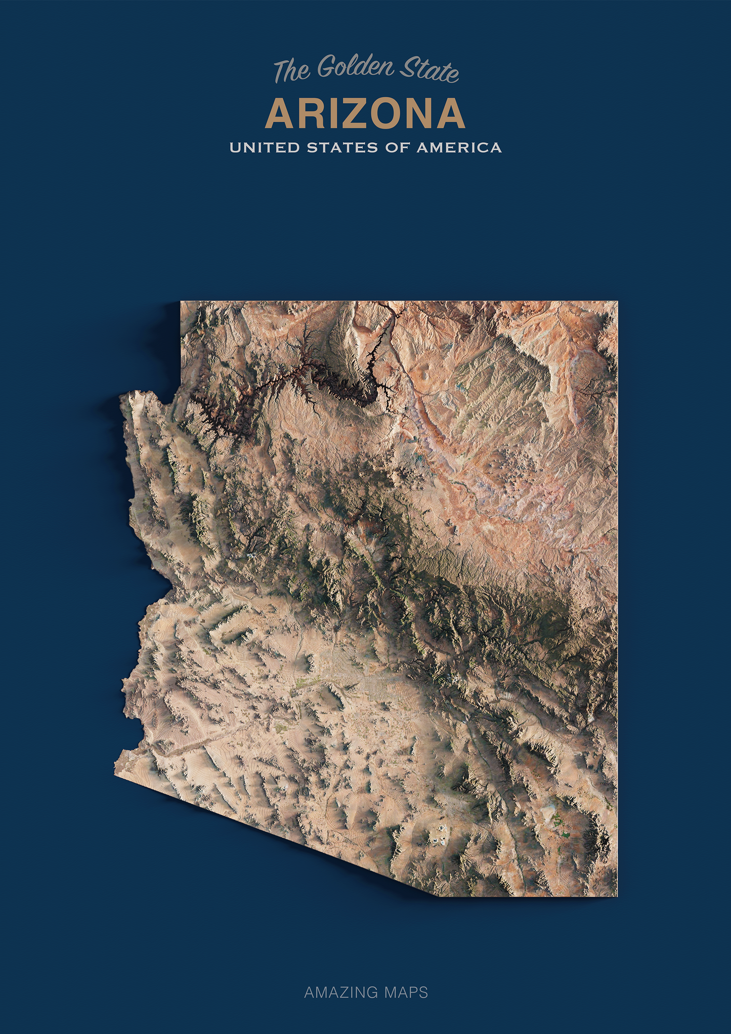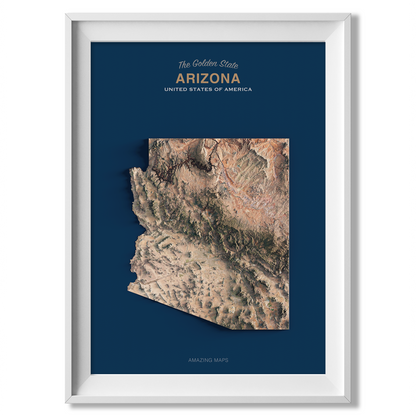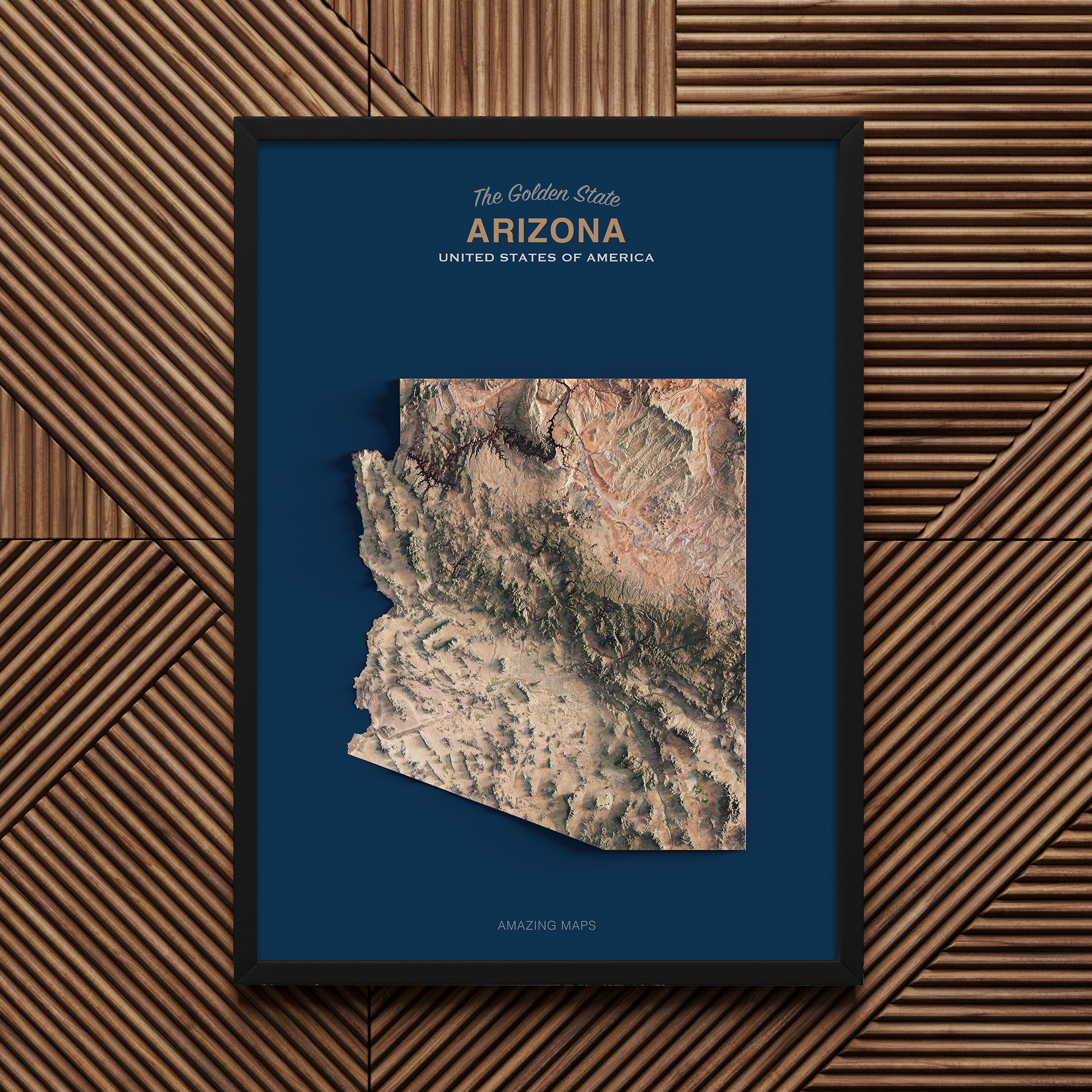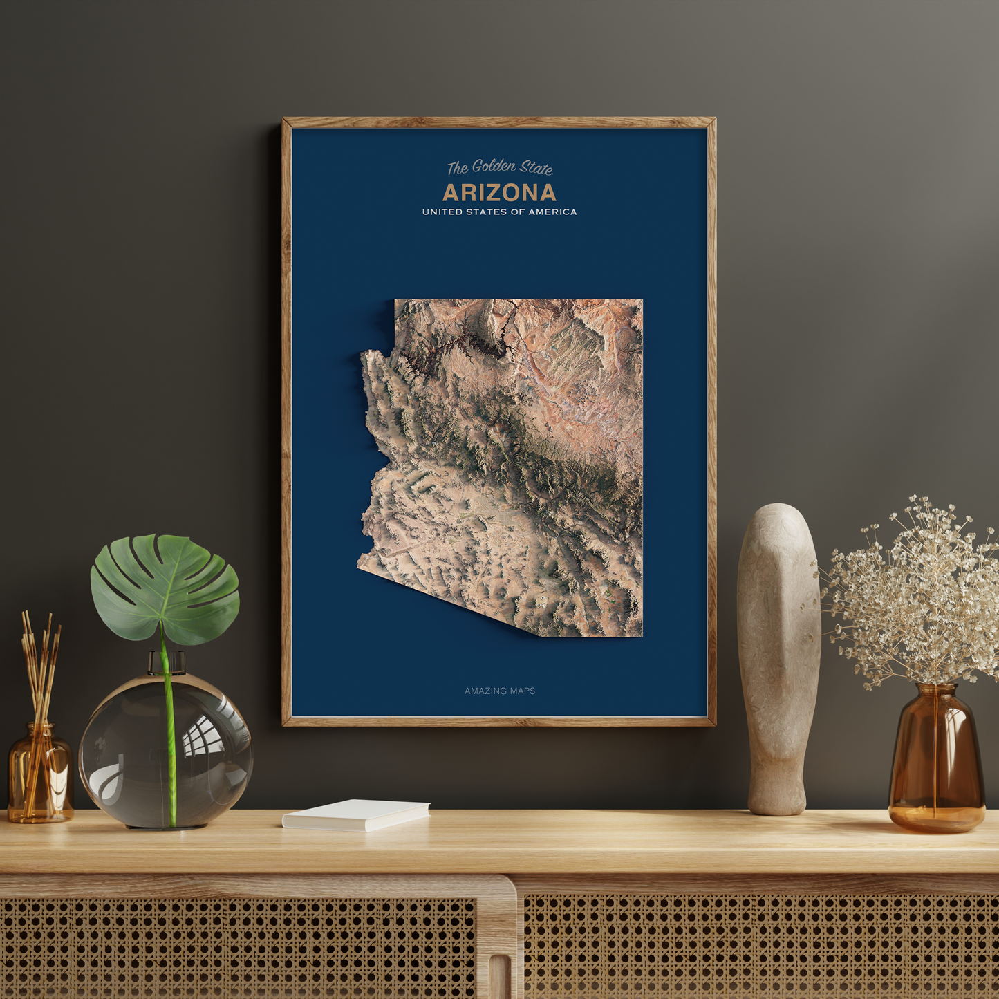 Enhance your decor with this stunning map print depicting the state of Arizona, part of the United States of America. Transform an empty space or give as a thoughtful gift. The print boasts intricate shading that creates a lifelike effect. Immerse yourself in its intricate details and transport yourself to another world. Elevate your home or gift it to a loved one. With its delicate shading, this print comes to life with a mesmerizing 3D effect.