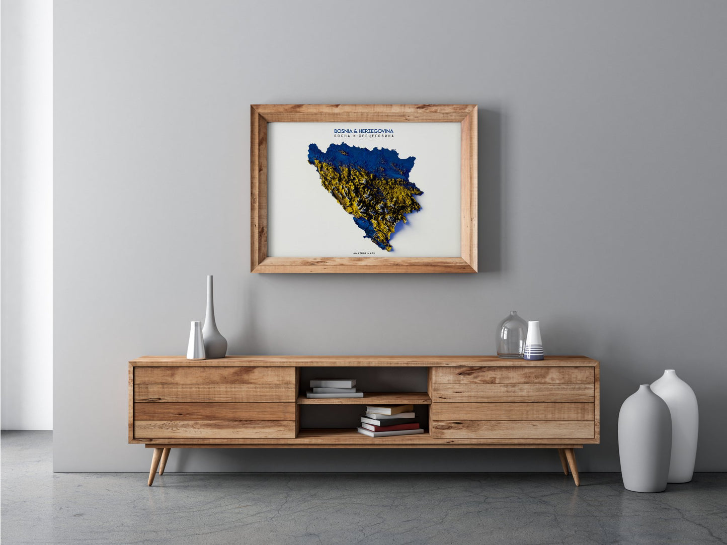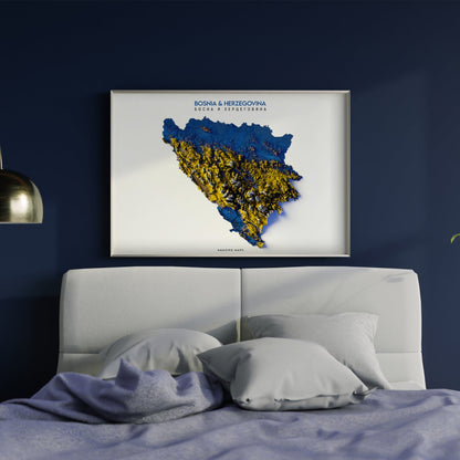 Enhance your decor with this stunning map print depicting Bosnia. Transform an empty space or give as a thoughtful gift. The print boasts intricate shading that creates a lifelike effect. Immerse yourself in its intricate details and transport yourself to another world. Elevate your home or gift it to a loved one. With its delicate shading, this print comes to life with a mesmerizing 3D effect.