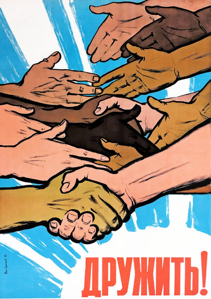Enhance your decor with this stunning propaganda poster depicting Friendship. Transform an empty space or give as a thoughtful gift. Immerse yourself in its intricate details and transport yourself to another world. Elevate your home or gift it to a loved one. With its delicate details, this print comes to life like the original historic poster.