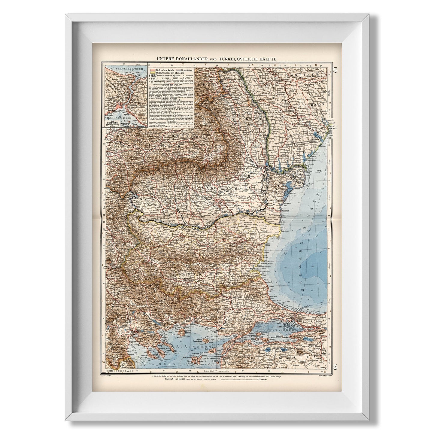 Enhance your decor with this stunning map print depicting the Bulgaria & Romania. Transform an empty space or give as a thoughtful gift. Immerse yourself in its intricate details and transport yourself to another world. Elevate your home or gift it to a loved one. With its delicate details, this print comes to life like the original historic map.