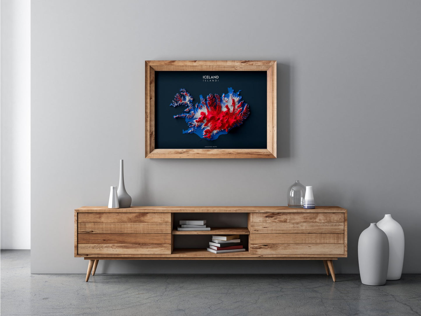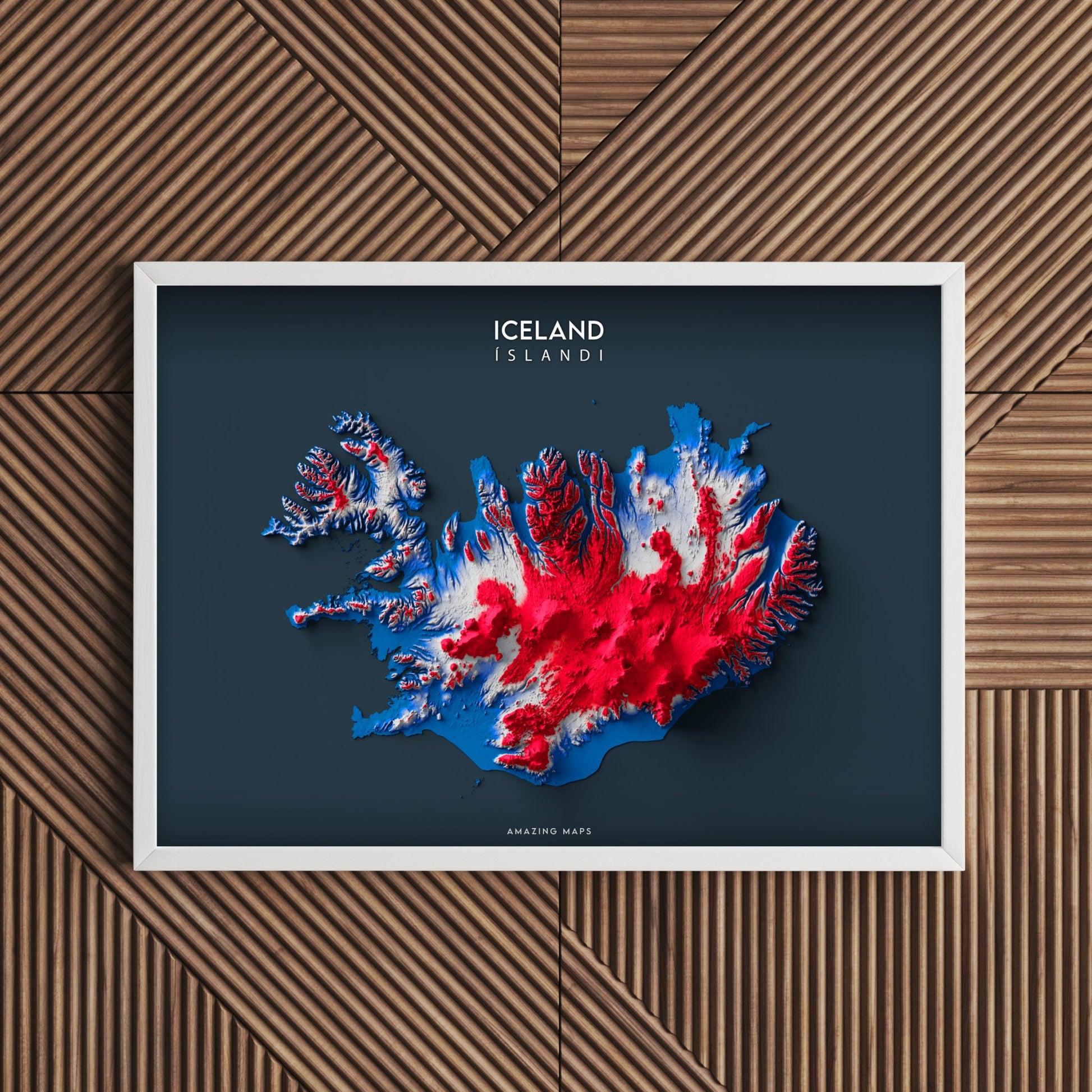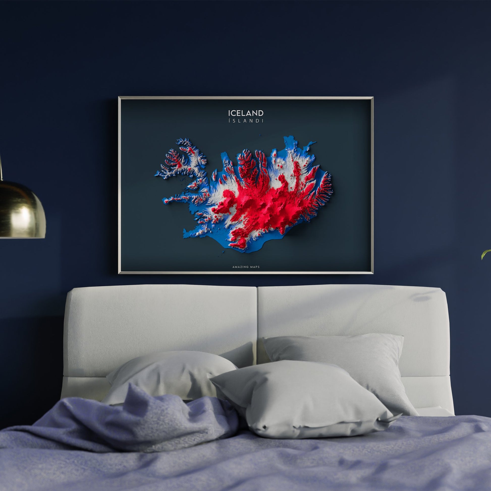 Enhance your decor with this stunning map print depicting Iceland. Transform an empty space or give as a thoughtful gift. The print boasts intricate shading that creates a lifelike effect. Immerse yourself in its intricate details and transport yourself to another world. Elevate your home or gift it to a loved one. With its delicate shading, this print comes to life with a mesmerizing 3D effect.