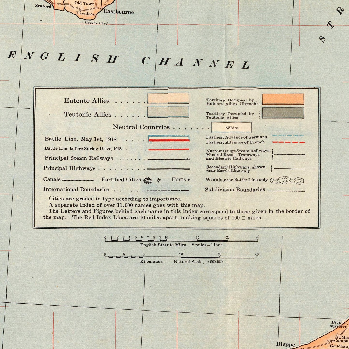 Enhance your decor with this stunning map print depicting the Western front in WW1. Transform an empty space or give as a thoughtful gift. Immerse yourself in its intricate details and transport yourself to another world. Elevate your home or gift it to a loved one. With its delicate details, this print comes to life like the original historic map.