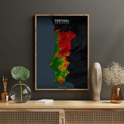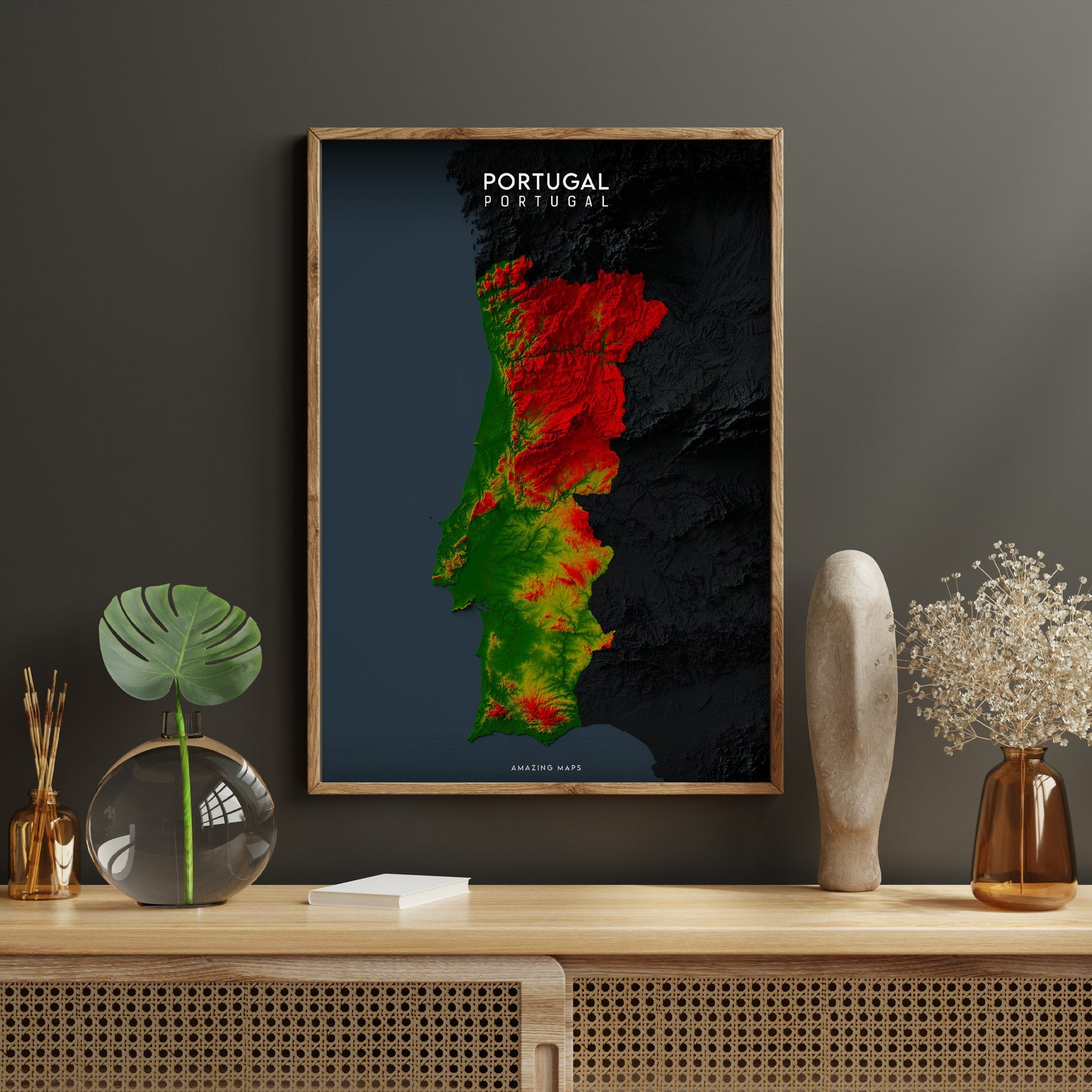 Enhance your decor with this stunning map print depicting Portugal. Transform an empty space or give as a thoughtful gift. The print boasts intricate shading that creates a lifelike effect. Immerse yourself in its intricate details and transport yourself to another world. Elevate your home or gift it to a loved one. With its delicate shading, this print comes to life with a mesmerizing 3D effect.