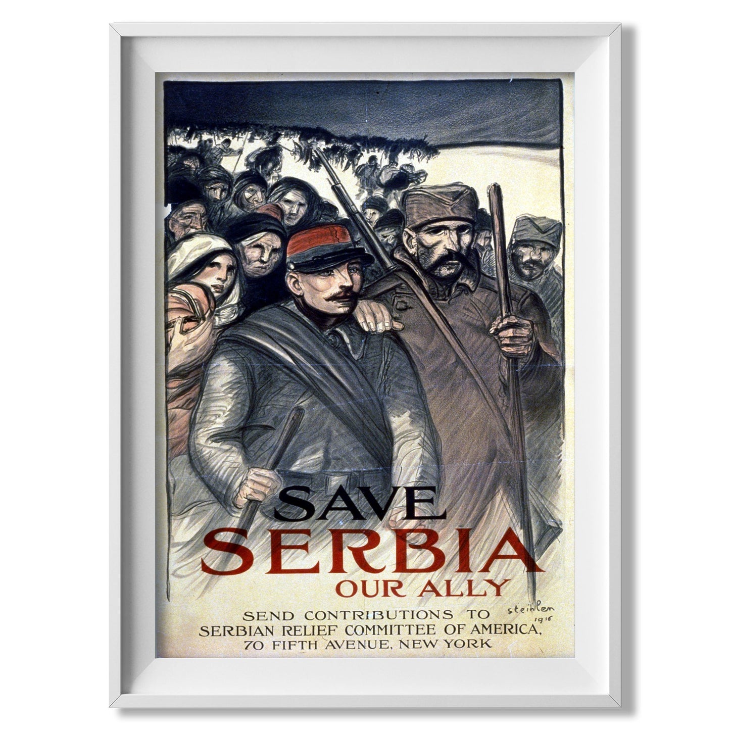 Enhance your decor with this stunning propaganda poster depicting an American propaganda poster about Serbia . Transform an empty space or give as a thoughtful gift. Immerse yourself in its intricate details and transport yourself to another world. Elevate your home or gift it to a loved one. With its delicate details, this print comes to life like the original historic poster.