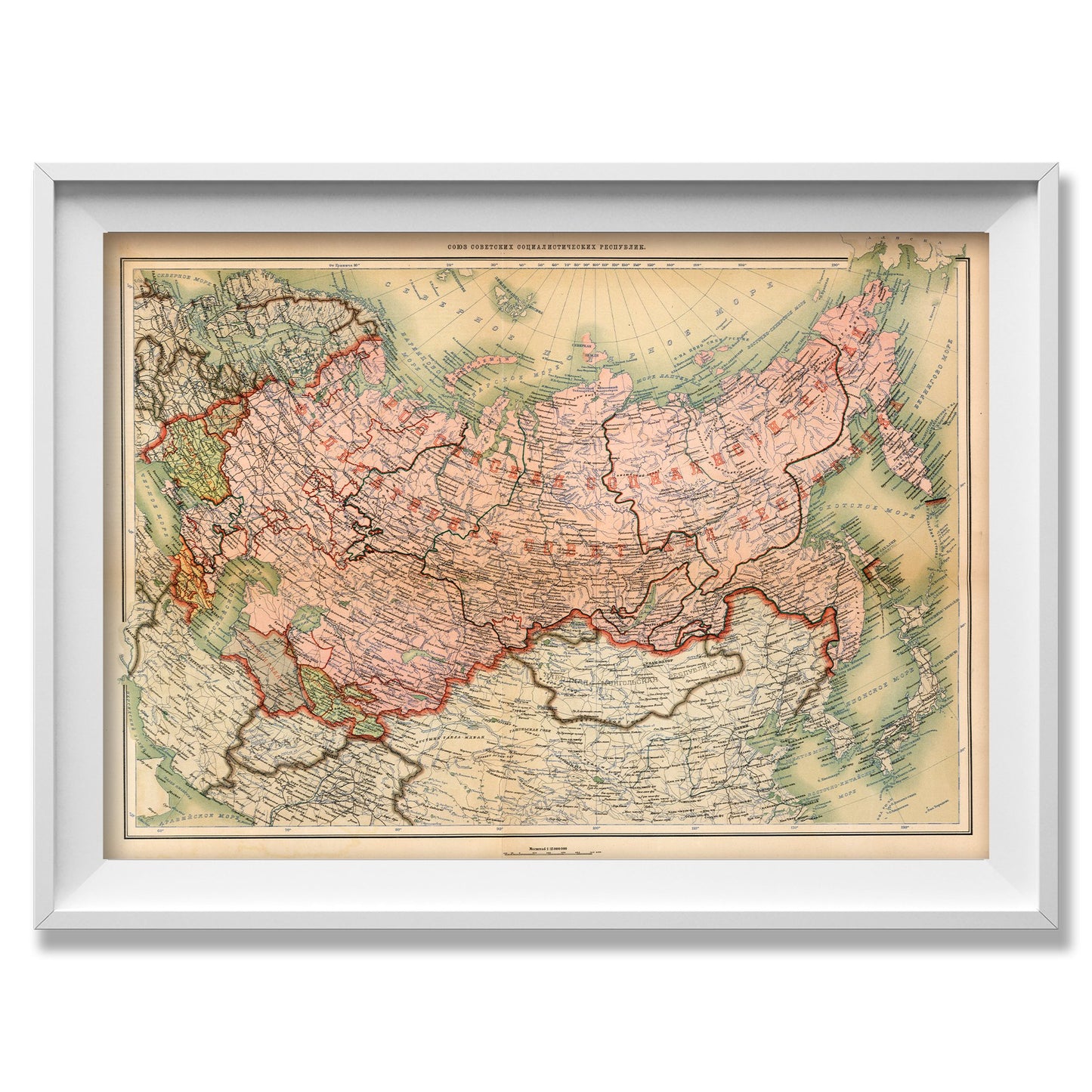 Enhance your decor with this stunning map print depicting the Soviet Union. Transform an empty space or give as a thoughtful gift. Immerse yourself in its intricate details and transport yourself to another world. Elevate your home or gift it to a loved one. With its delicate details, this print comes to life like the original historic map.